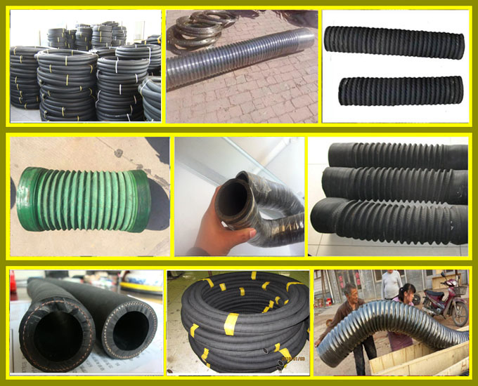 伸縮膠管由耐磨、耐高溫的合成橡膠內膠層、簾子線纏繞增強層、螺旋鋼絲骨架層和外膠層組成
